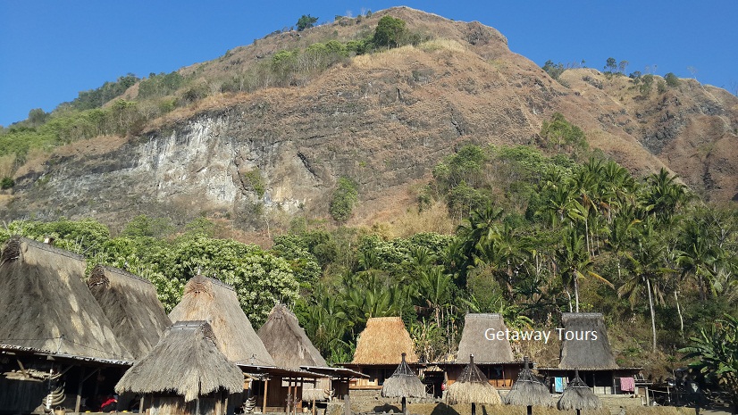 As other indigenous hamlet, located in the middle of the village are Ngadhu and Bhaga, small house-like building with different shape as symbol of men and women spirit, the number of Ngadhu and Bhaga show the number of ethnics living in the hamlet. There are also megalith tomb located in the center of the village. Bull horns slaughtered as sacrifice displayed in front of every house. To build a house, to find a wooden pillar, to decorate the house they must sacrifice pigs and bulls.